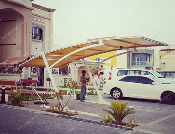 Roof cover of this carport is made of 1150g/sq.m high density polyethylene fabric coated with PVDF (Polyvinylidine Fluoride) at surface.It is high quality at waterproof,flame retardant,UV resistant,heat insulating and will not sag,fade,rot or mildew.The temperature resistance(℃) is from -40℃ to +70℃ and the life span is at least 15 years.Color options:Yellow,Gray,Blue,White,Brown,White,etc